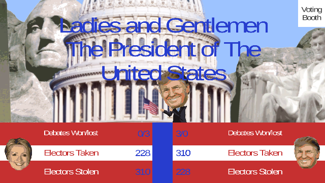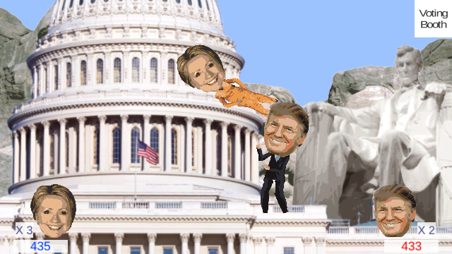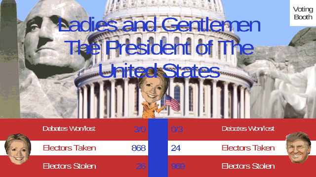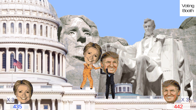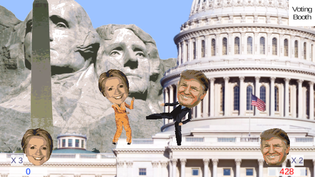 Controls: Clinton(Punch=f, Jump=g, Block=h, Special=e) and Trump(Punch=l, Jump=k, Block=j, Special=m)